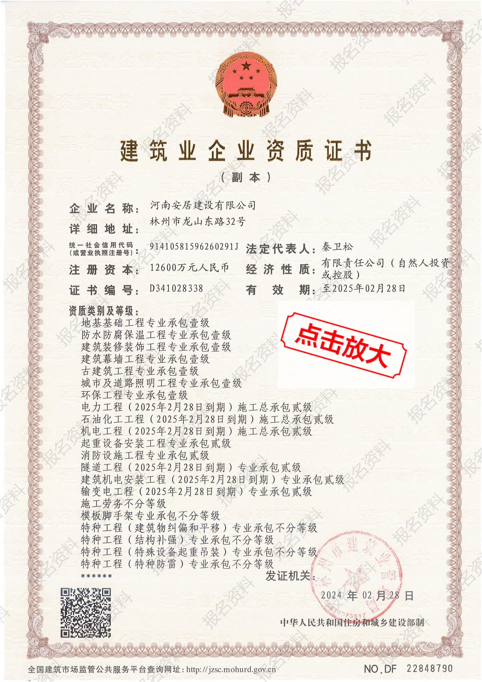 滔滔黃河哺育了中華民族拼搏向上的奮斗精神,巍巍太行造就了中原兒女的紅旗渠精神。百萬林州人下太行,鑄就了中國建筑之鄉(xiāng)響當當?shù)囊燮放啤:幽习簿咏ㄔO有限公司從誕生起血液里就流淌著紅色基因,秉承“安得廣夏千萬間,大庇天下寒士俱歡顏”的擔當精神,用鋼筋混凝土筑起了高樓大廈,也用一流品質(zhì)、家國情懷打造了安居建設的輝煌成績。公司成立于2012年,注冊資金12600萬元,公司成立至今,擁有建筑,市政施工總承包等十項一級資質(zhì);其他二級等資質(zhì)共二十余項。公司秉承質(zhì)量第一,服務為主,堅持垂直管理,從不設立分公司等分支機構(gòu)。